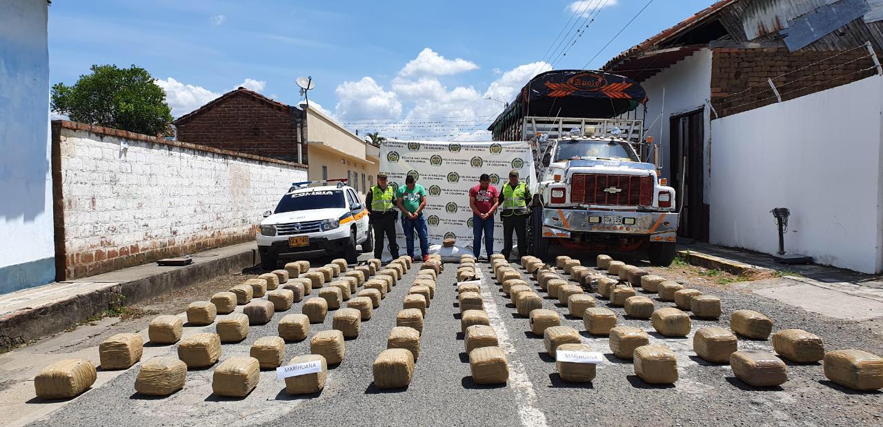 La policía capturó en el norte del Valle a dos personas que transportaban un alijo de marihuana en un vehículo de carga que al parecer tenía como destino el Eje Cafetero.