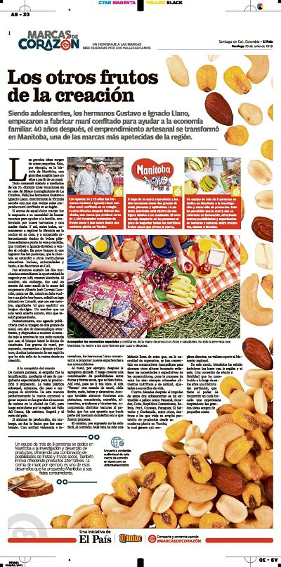 A través de Marcas de Corazón, las audiencias de El País y Q’hubo pudieron viajar al alma de emprendimientos que, convertidos en empresas, llevan muchos años construyendo la región a la que nos pertenece el alma. Un ‘itinerario’ desarrollado entre el 16 de junio y el 22 de septiembre, no solo a través de las publicaciones impresas que semana tras semana hicieron parte del cuerpo editorial de ambos diarios, sino también mediante una articulada programación de contenidos especiales para redes sociales donde, a partir de menciones, historias y concursos, logramos una interesante conexión: 850.000 interacciones sobre los productos que tuvo la campaña en sus tres meses al aire, así como más de 150.000 visitas al sitio web de Marcas de Corazón.