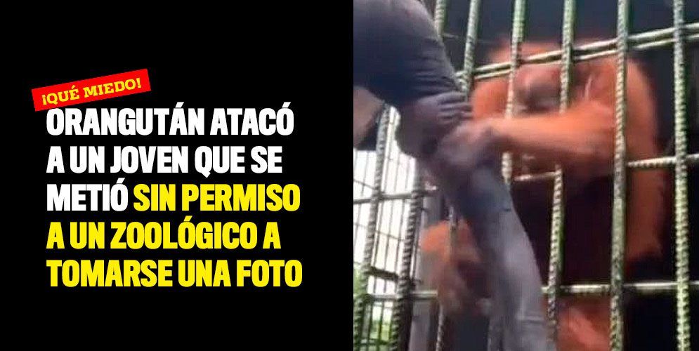 En un video quedó registrado el ataque de un orangután a un joven dentro de un zoológico de Kasang Kulim en la provincia de Riau en Indonesia.