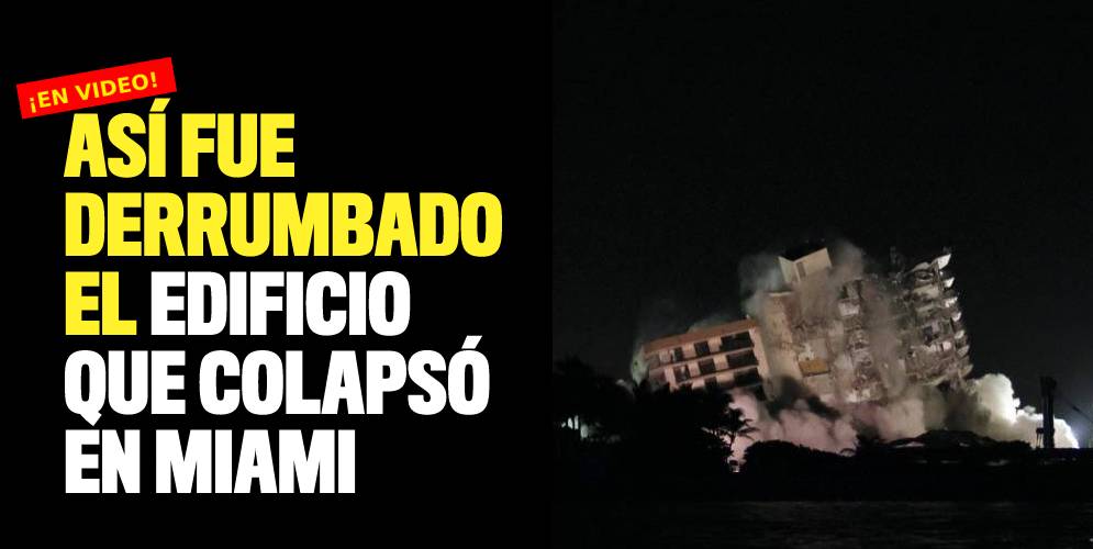 Según imágenes de la televisión, la demolición controlada se produjo poco después de las 10:30 p.m. hora local de Miami.