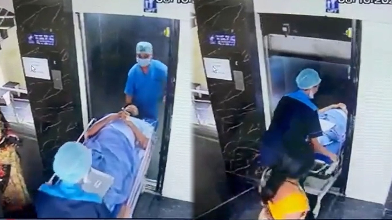 La cámara de seguridad de un hospital en India grabó el momento exacto cuando un ascensor de las instalaciones se desplomó con un paciente en camilla y un enfermero.