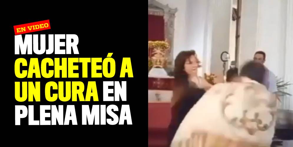 En el clip se ve cuando la fémina se acerca, le dice "escuchó quién soy yo" y lo golpea fuertemente, ante la mirada atónita de quienes acompañaban al párroco. Las personas debieron intervenir para que no continuara la agresión.
