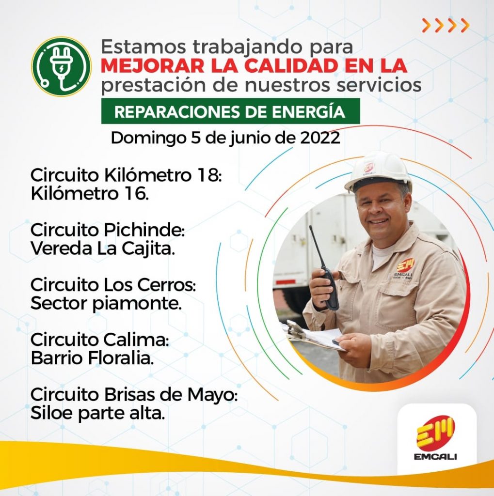 La información fue compartida por Emcali a través de su cuenta de twitter durante la mañana de este domingo.