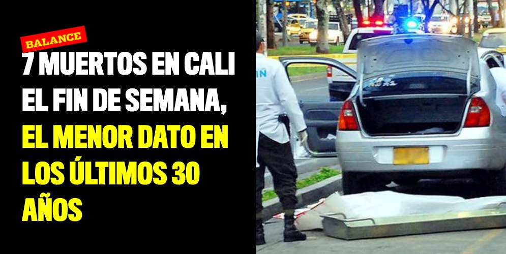 7 muertos en Cali el fin de semana, el menor registro en los últimos 30 años