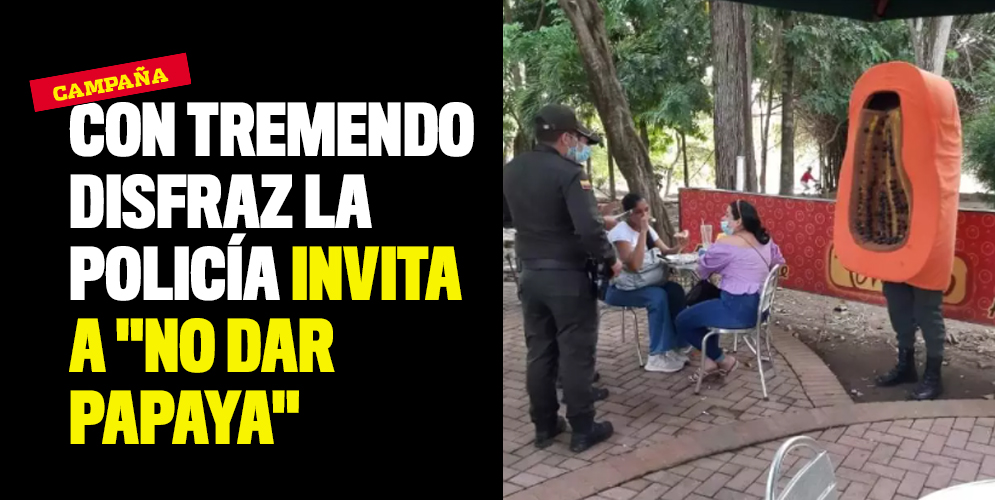 Uniformados disfrazados de papaya, recorren las calles y hacen pausas en establecimientos comerciales o sitios concurridos.