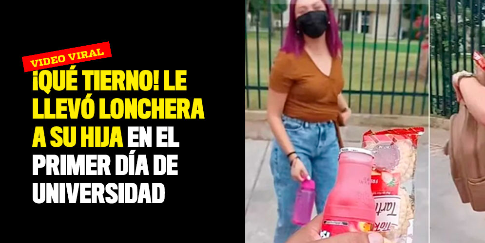 El padre comienza a grabar y la joven se sorprende debido a que no se esperaba que su padre le hubiera alistado lonchera para su entrada a la universidad.
