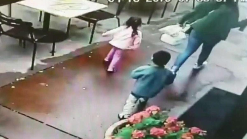 Todo ocurrió frente a un restaurante cuando la fémina caminaba de la mano con las dos menores junto a un restaurante.
