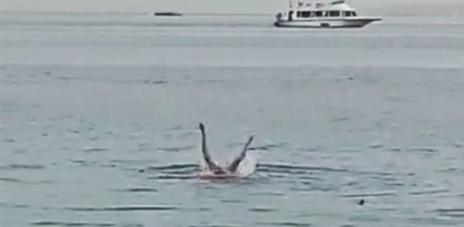 El material audiovisual, que rápidamente se viralizó en las redes sociales, muestra el momento en que el tiburón se abalanza sobre el hombre, mientras otros bañistas gritan horrorizados.