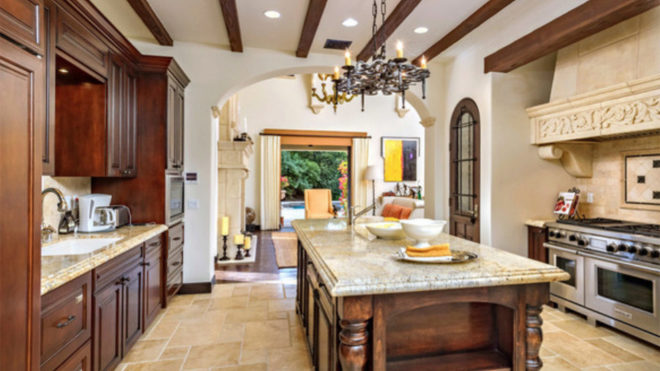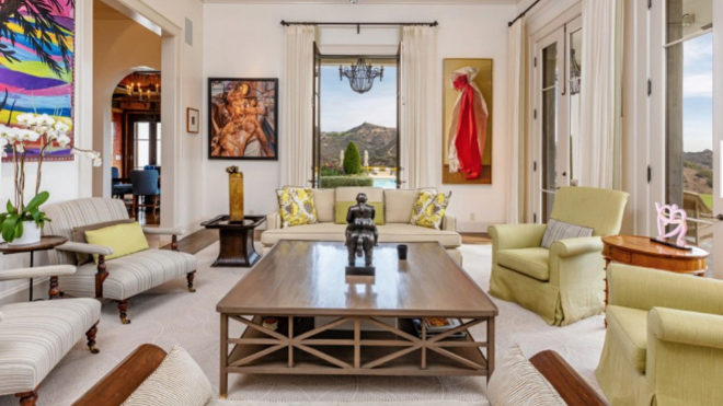Es una propiedad de estilo mediterráneo con una superficie de 14 mil metros cuadrados. Es de dos plantas y posee grandes espacios y amenidades. La sala de estar tiene vista sobre Rodeo Drive, sitio donde se ubican algunas de las tiendas más caras del mundo.