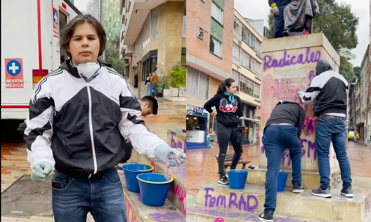 En un video subido a su cuenta de Twitter el pasado 9 de marzo, el joven mostró como él y algunos estudiantes universitarios se dedicaron en el día a limpiar algunos muros "con grafitis". La limpieza se realizó cerca a la Universidad de los Andes y, en especial, la estatua de La Pola.