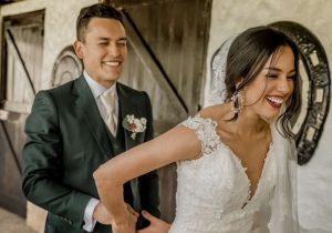 Por su parte, este fin de semana se llevó a cabo la gran ceremonia, en la que portó un vestido blanco largo ajustado a su figura y en la que se mostró más enamorada que nunca.