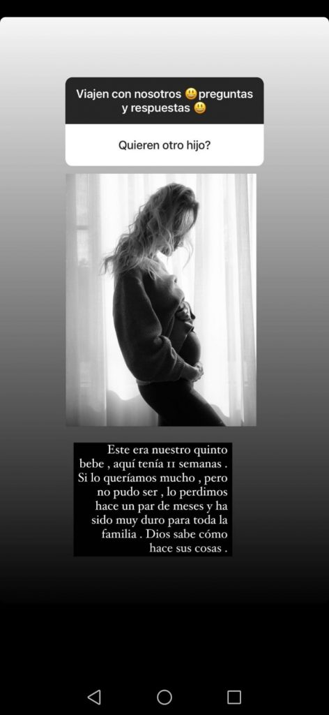 La cantante argentina le reveló a sus seguidores que hace poco estaban esperando a su quinto bebé, pero lamentablemente lo perdieron hace algunos meses.